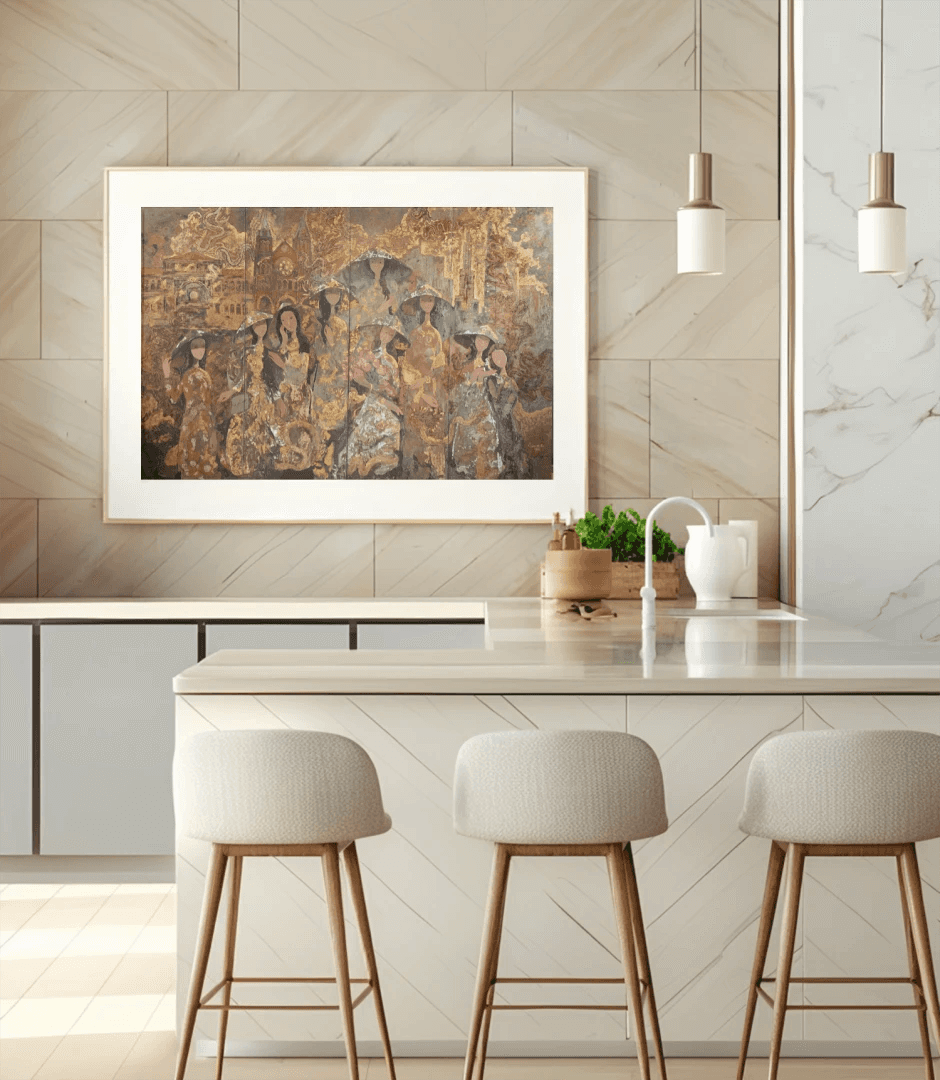 The work clarifies Thao Huynh’s core interests. Her focus on women is rendered with restraint and quiet poise, while the material intelligence of lacquer carries the theme of remembrance. Gold leaf catches ambient light, turning reflection into a narrative device that links youthful presence to inherited places. As an artist trained in traditional lacquer and committed to a modern visual language, Huynh uses process to bind biography and city, intimacy and history, into one luminous field.